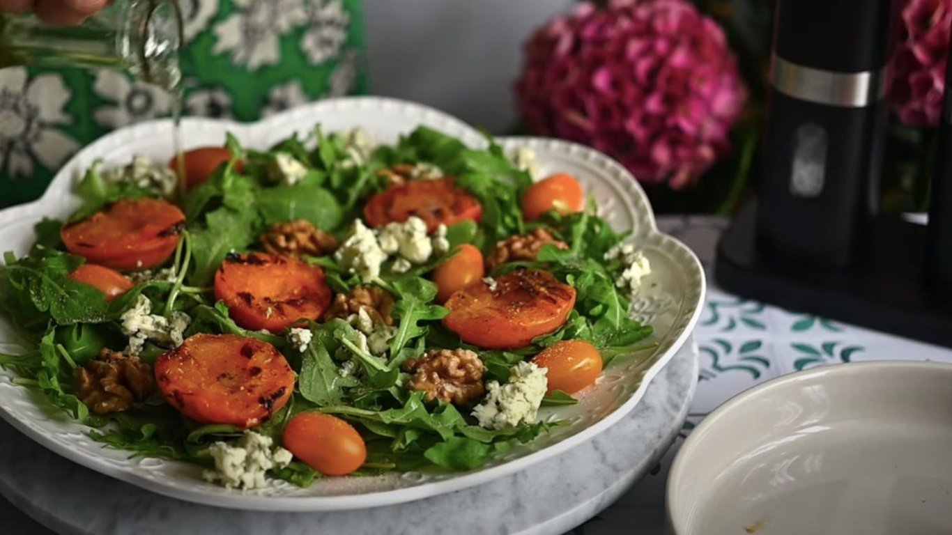 Салат з абрикосами, горіхами та блакитним сиром — ідеальний для літніх посиденьок